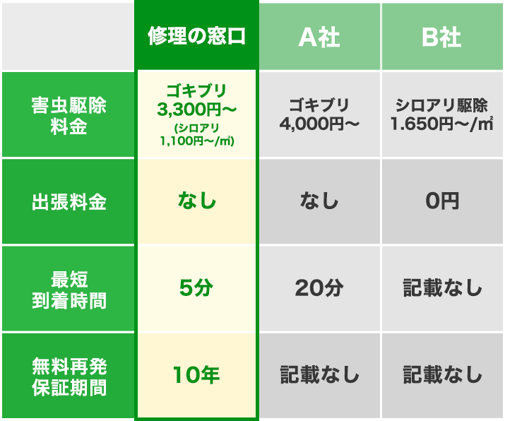 万が一害虫被害が再発した場合、作業日から最長10年間、再駆除を無料でいたします。